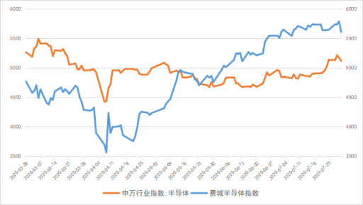 從資本市場(chǎng)指數(shù)來看,6月費(fèi)城半導(dǎo)體指數(shù)(SOX)上漲11.7%,中國(guó)半導(dǎo)體(SW)業(yè)指數(shù)上升5.3%,國(guó)內(nèi)外半導(dǎo)體資本市場(chǎng)受關(guān)稅緩解影響回升明顯。