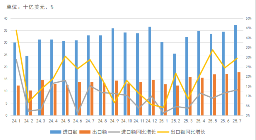 (2)半導(dǎo)體貿(mào)易相對(duì)平穩(wěn),出口增長(zhǎng)較快